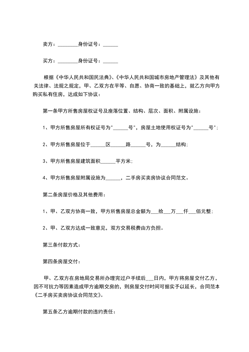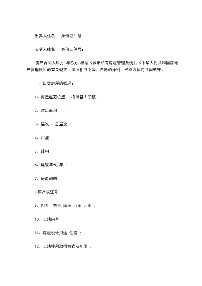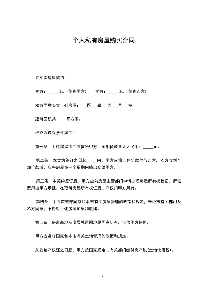 第一条 上述房屋由乙方售给甲方,全部价款共计人民币:_____元。