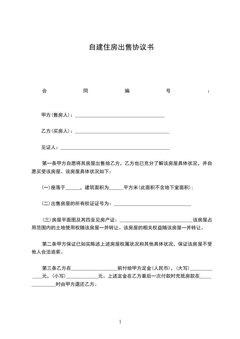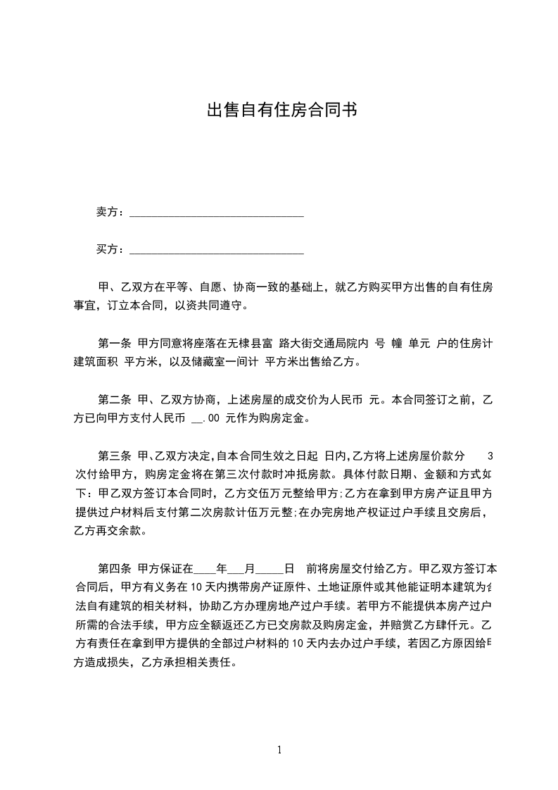 2、甲方自愿将位于_____市_____区_______________________第_____栋________单元_______楼_______号的自有住房出售给乙方。