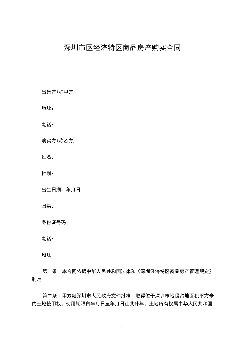 第一条 本合同依据中华人民共和国法律和《深圳经济特区商品房产管理规定》制定。