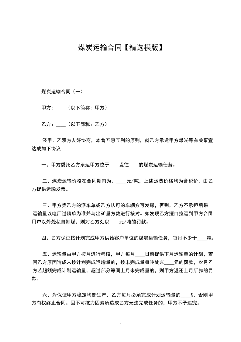 篇1 煤炭运输合同