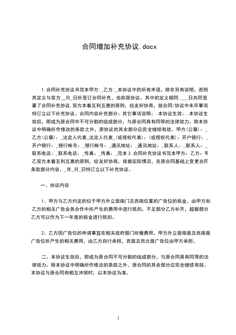 篇1 工程项目增加补充协议