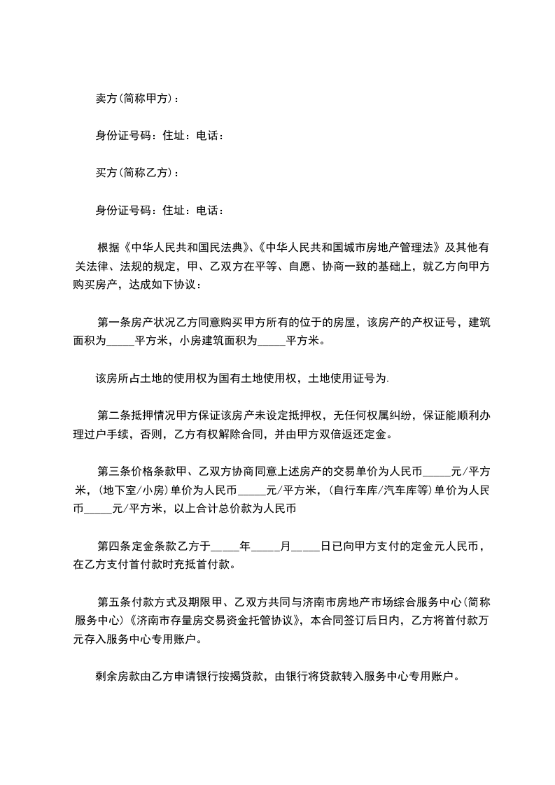 第五条付款方式及期限甲、乙双方共同与济南市房地产市场综合服务中心(简称服务中心)《济南市存量房交易资金托管协议》,本合同签订后日内,乙方将首付款万元存入服务中心专用账户。