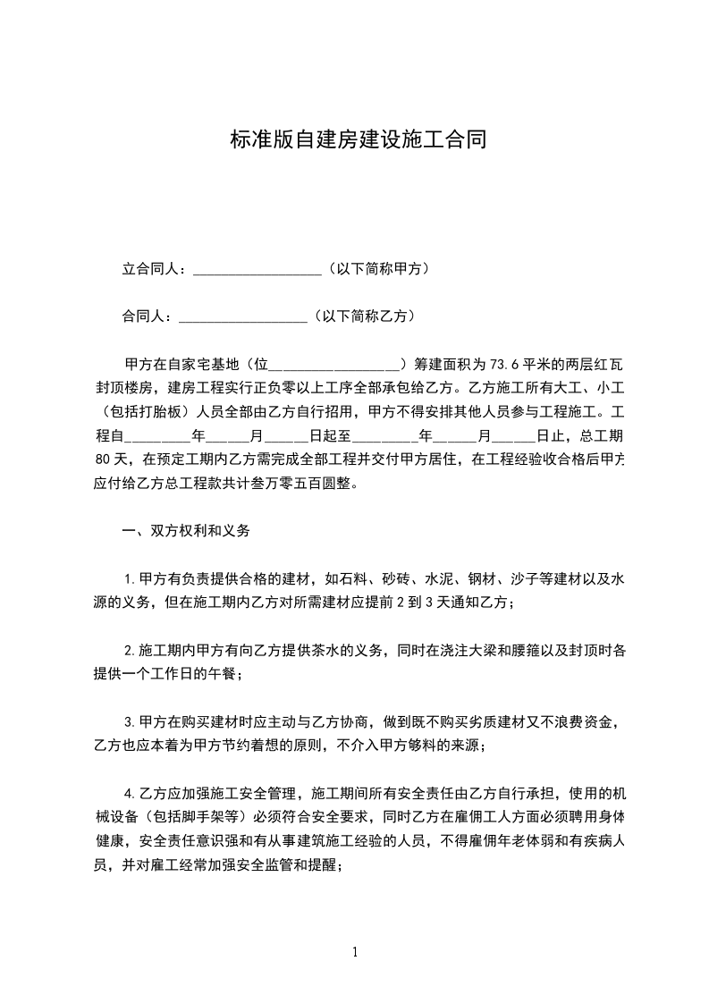 篇1 自建房合同