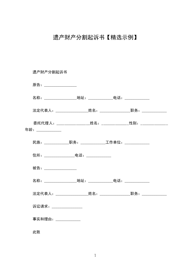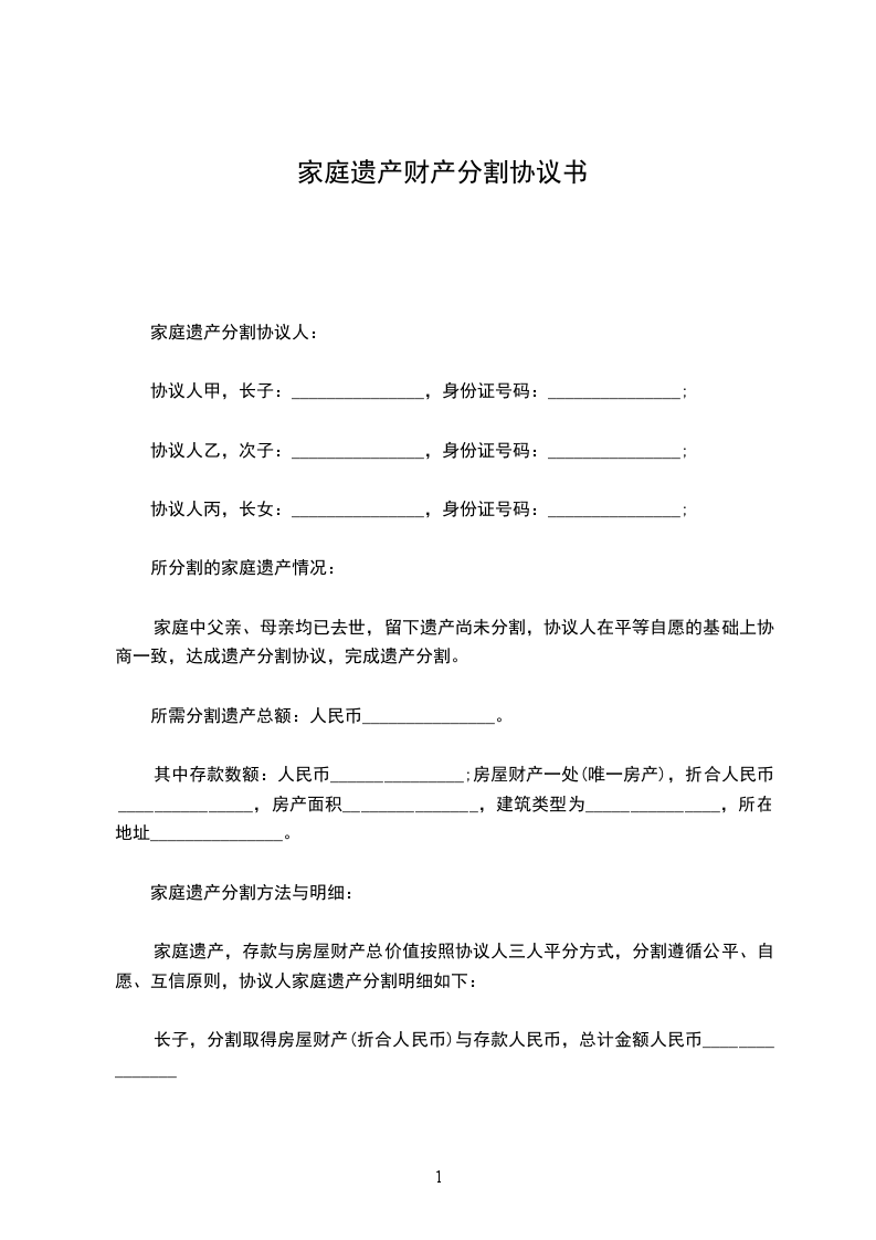 篇1 遗产财产分割协议