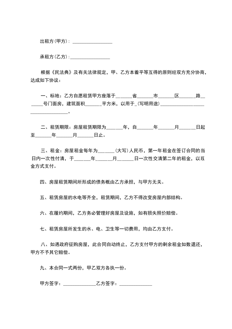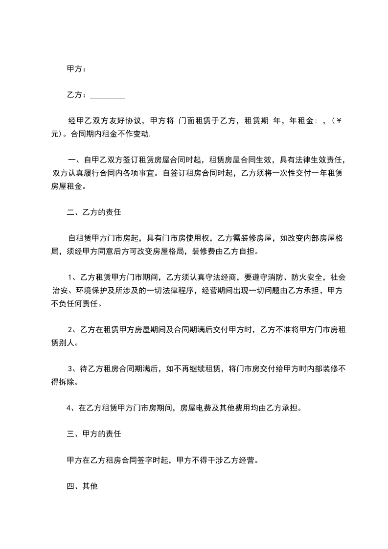9.本合同在规定的租赁期届满前30日内,如出租方仍继续出租房屋,乙方在同等租金价位条件下享有优先租用权,但租金按当时的物价及周围门市租金涨幅作适当调整,重新签订合同,并一次性交纳房租。