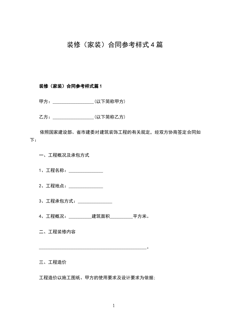 篇1 家庭装修合同