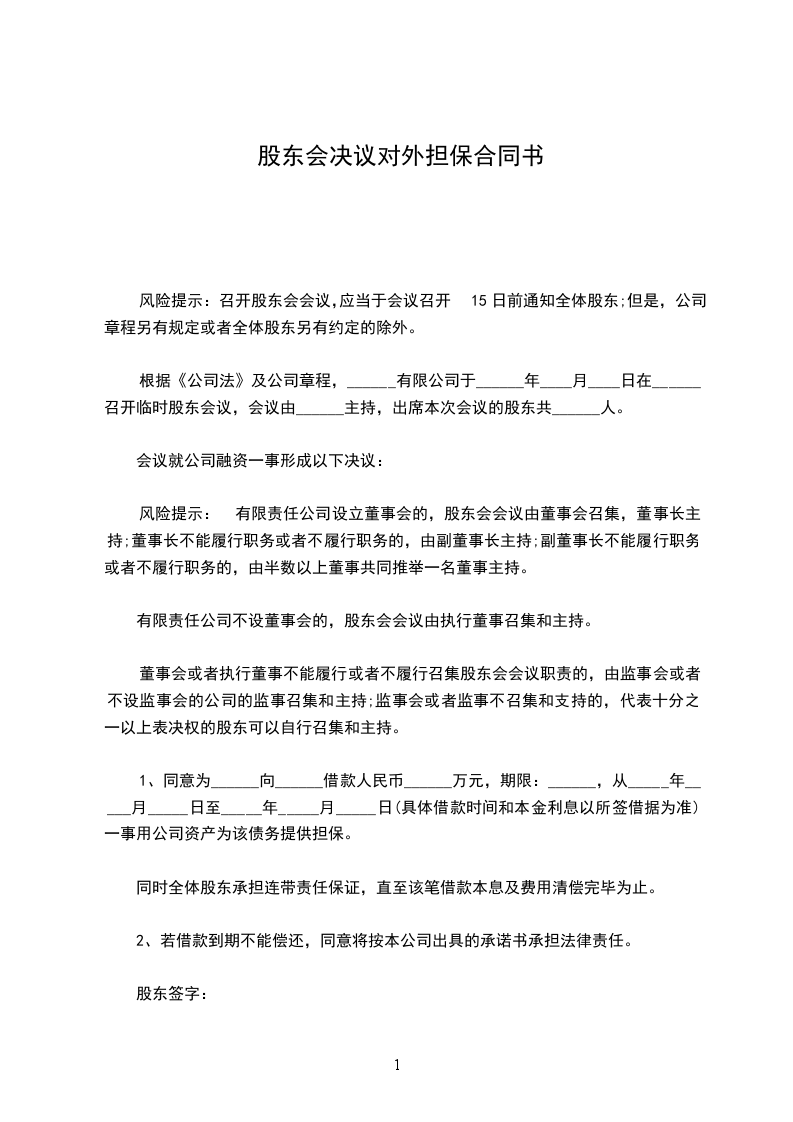 全体股东签字:年 月 日