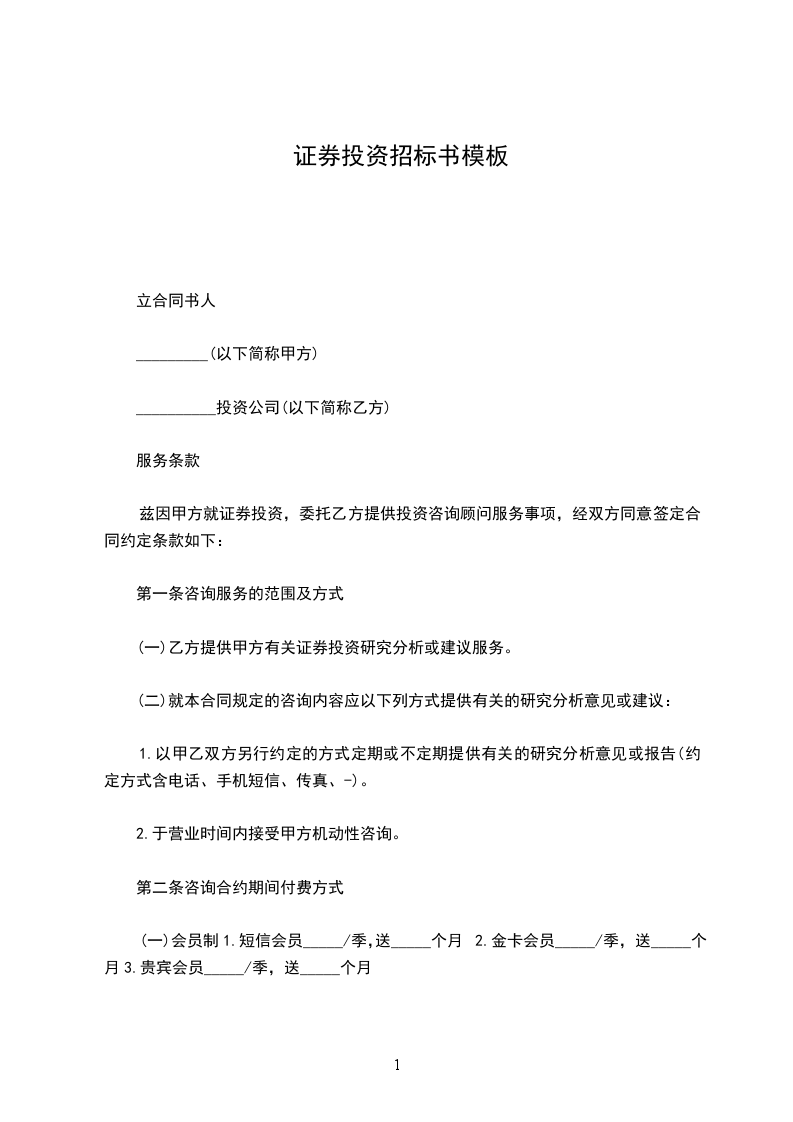 (一)乙方提供甲方有关证券投资研究分析或建议服务。