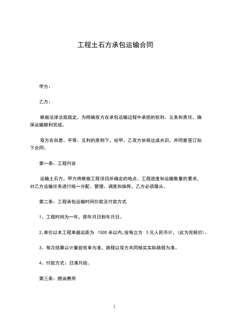 2、单价以本工程单趟运距为1500米以内,按每立方3元人民币计,(此为完税价)。