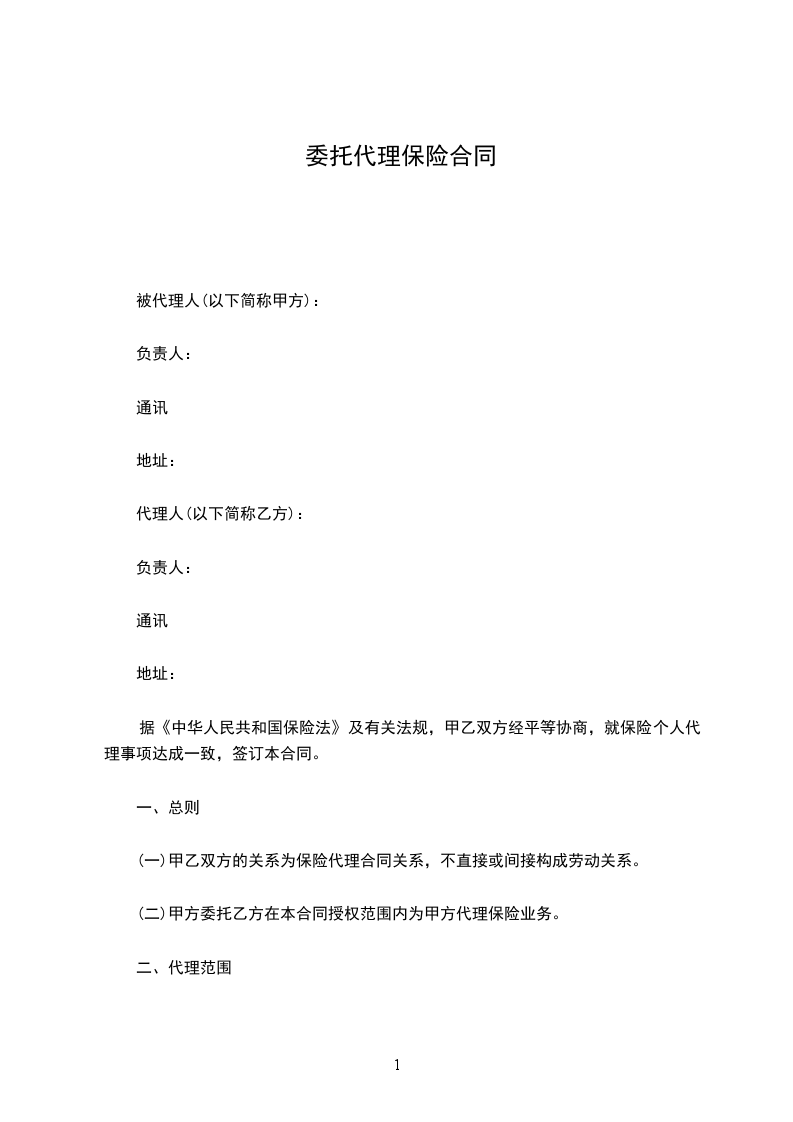 保险公司名称_____________,公司法定地址_____________(以下称甲方),同意将本合同列明之事项的代理权授予代理人(以下简称乙方)代理人姓名_____________,其户籍所在地_____________。