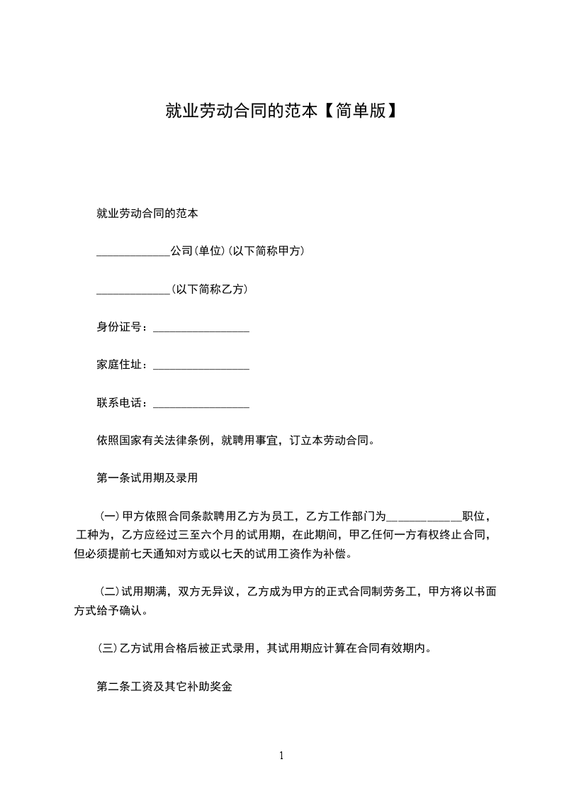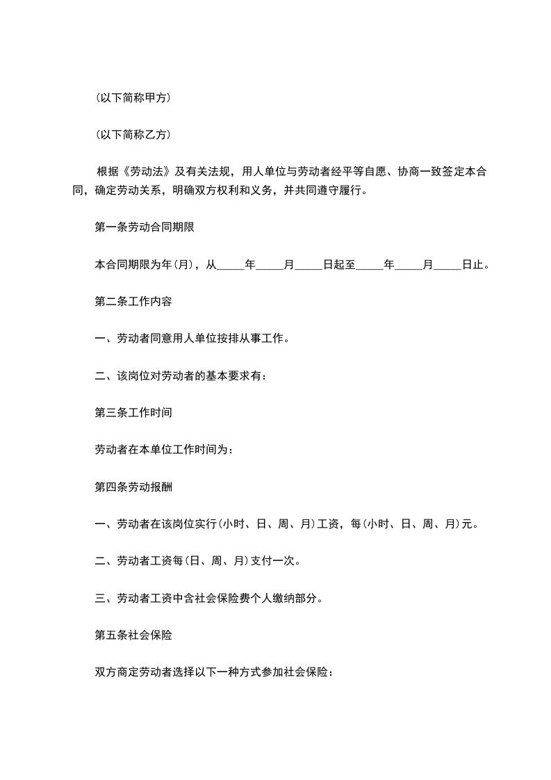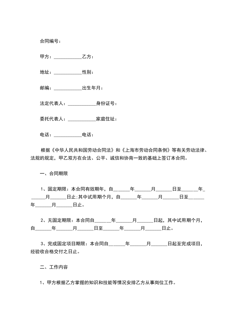 第一条劳动合同期限
