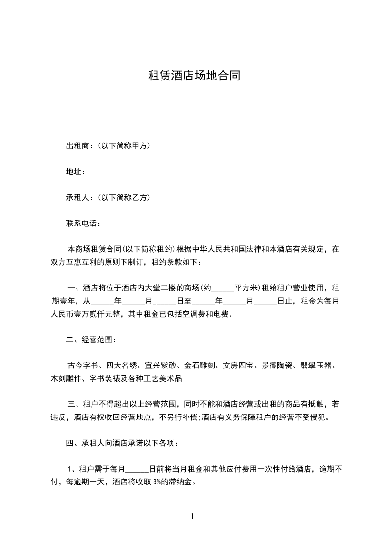 本商场租赁合同(以下简称租约)根据中华人民共和国法律和本酒店有关规定,在双方互惠互利的原则下制订,租约条款如下: