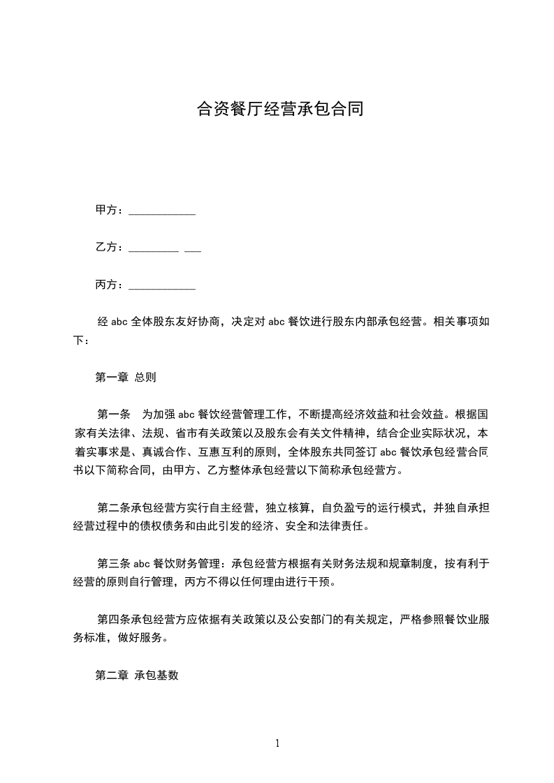 1. 合作经营的餐厅名称为:______________________