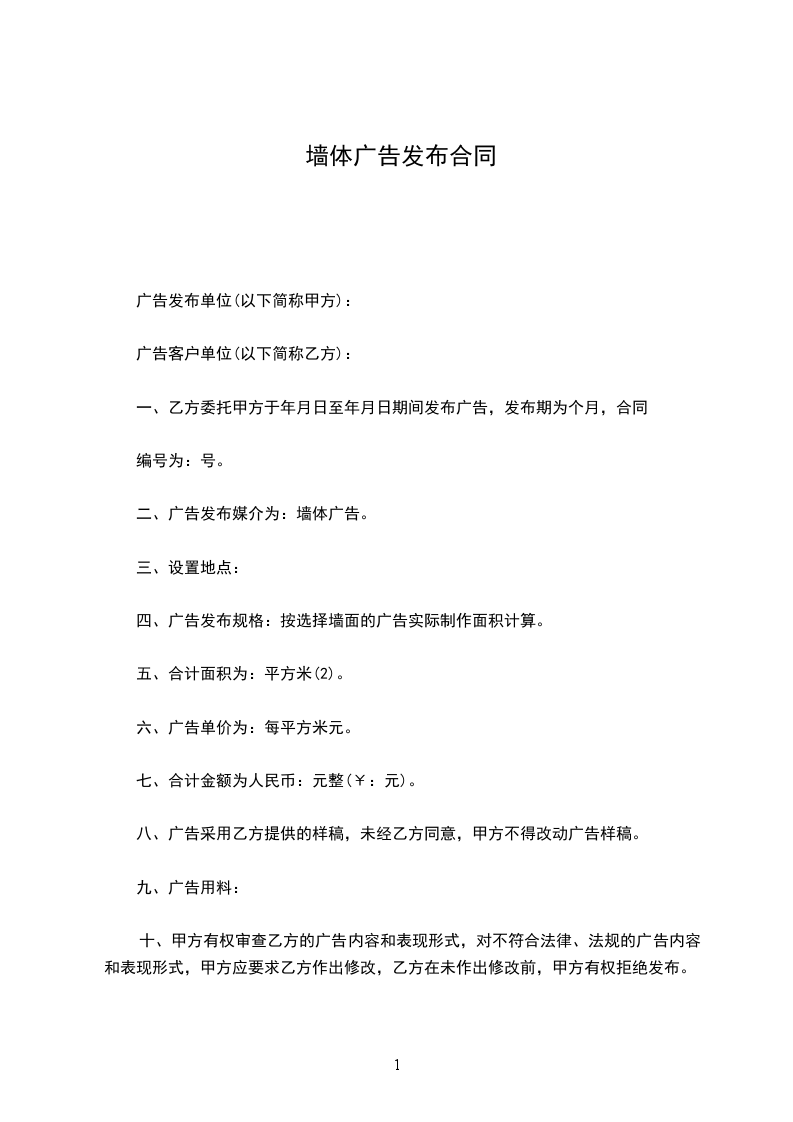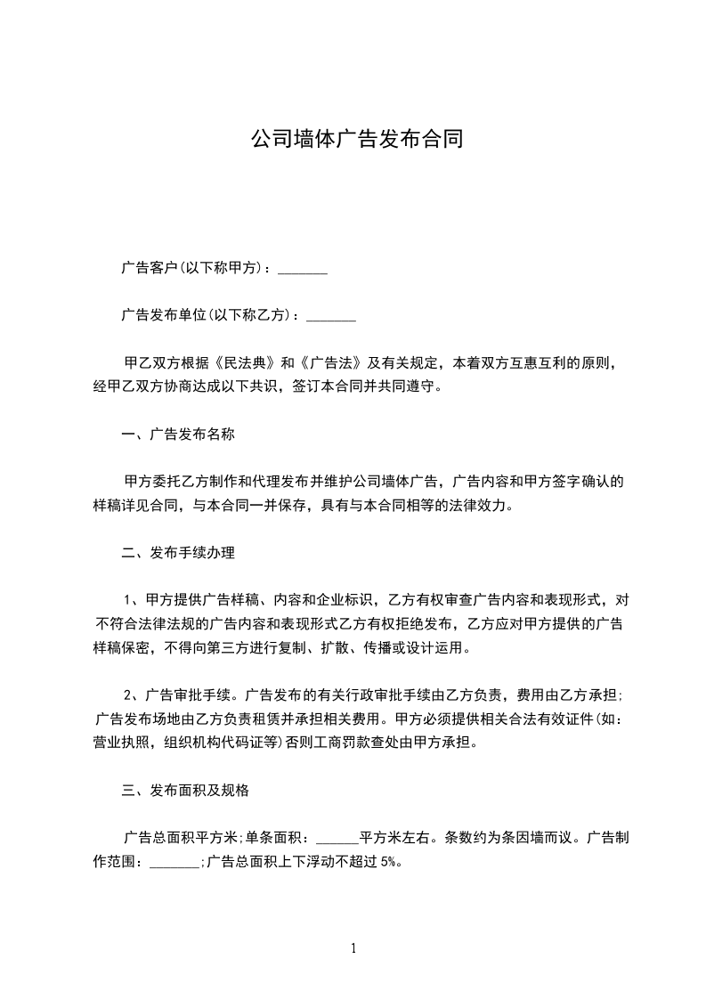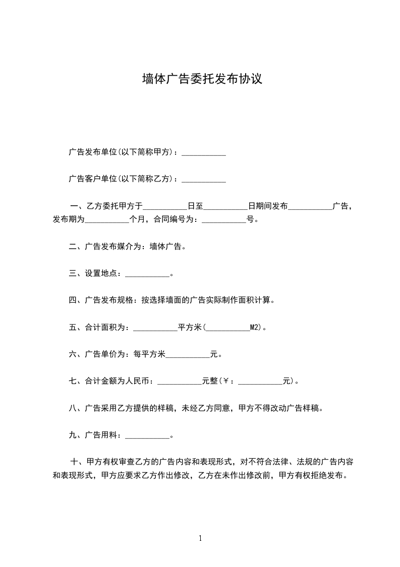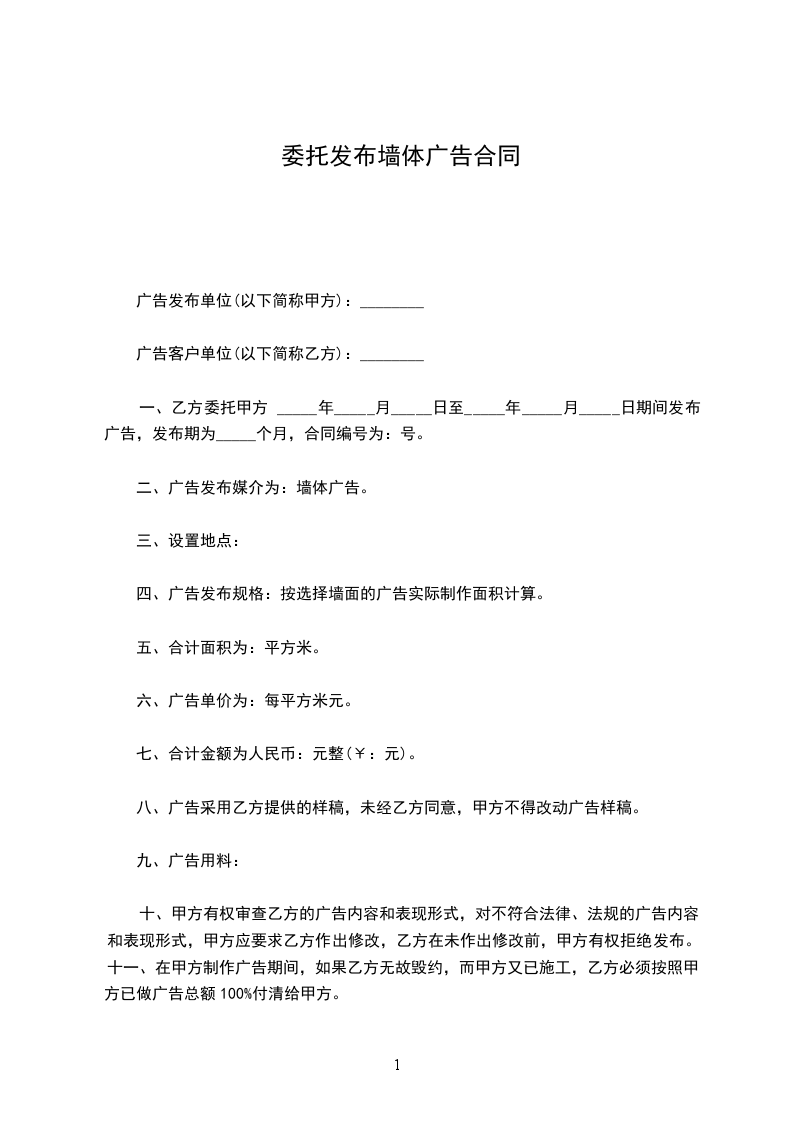 一、乙方委托甲方于_____年_____月_____日至_____年_____月_____日期间发布广告,发布期为_____个月,合同