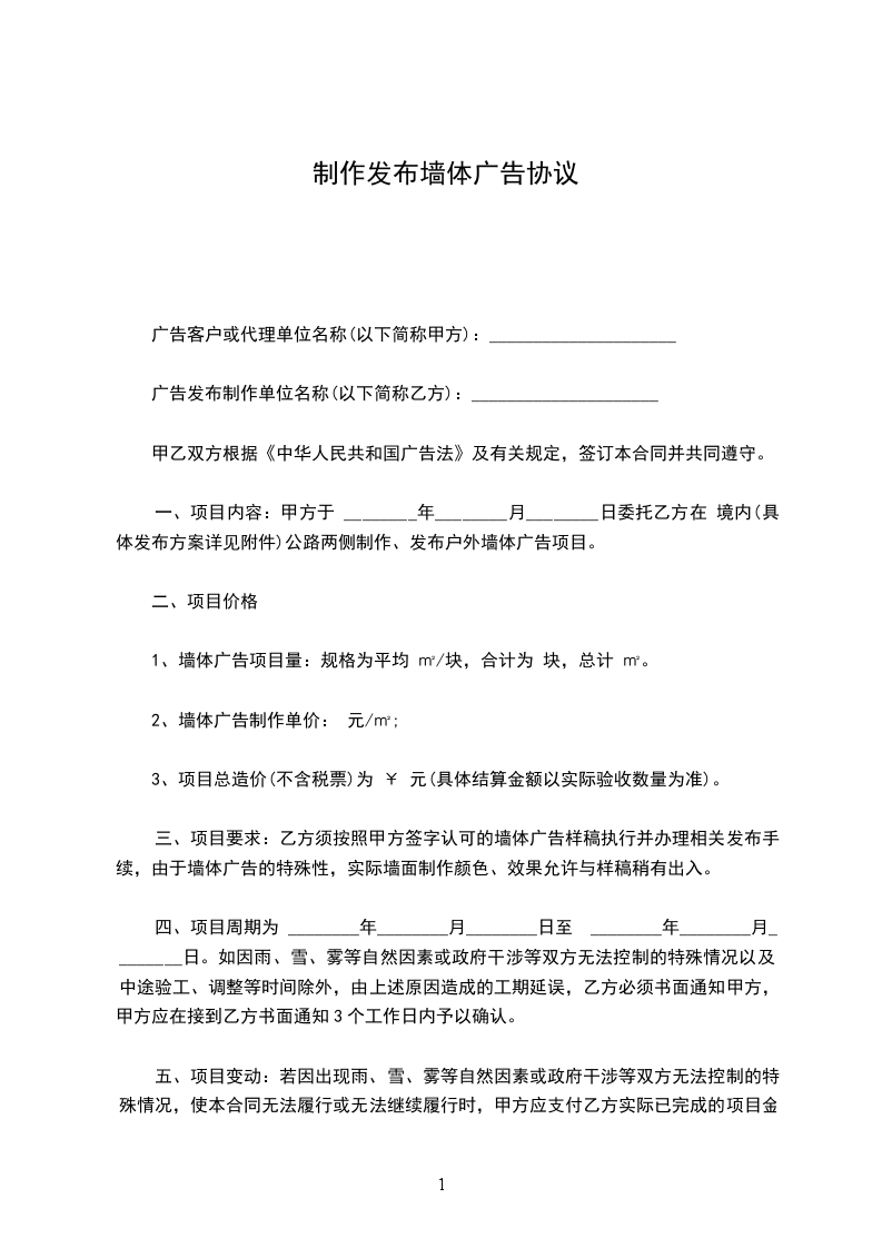 十六、墙体广告在发布期内如出现质量问题,甲方在15天内给予修复。