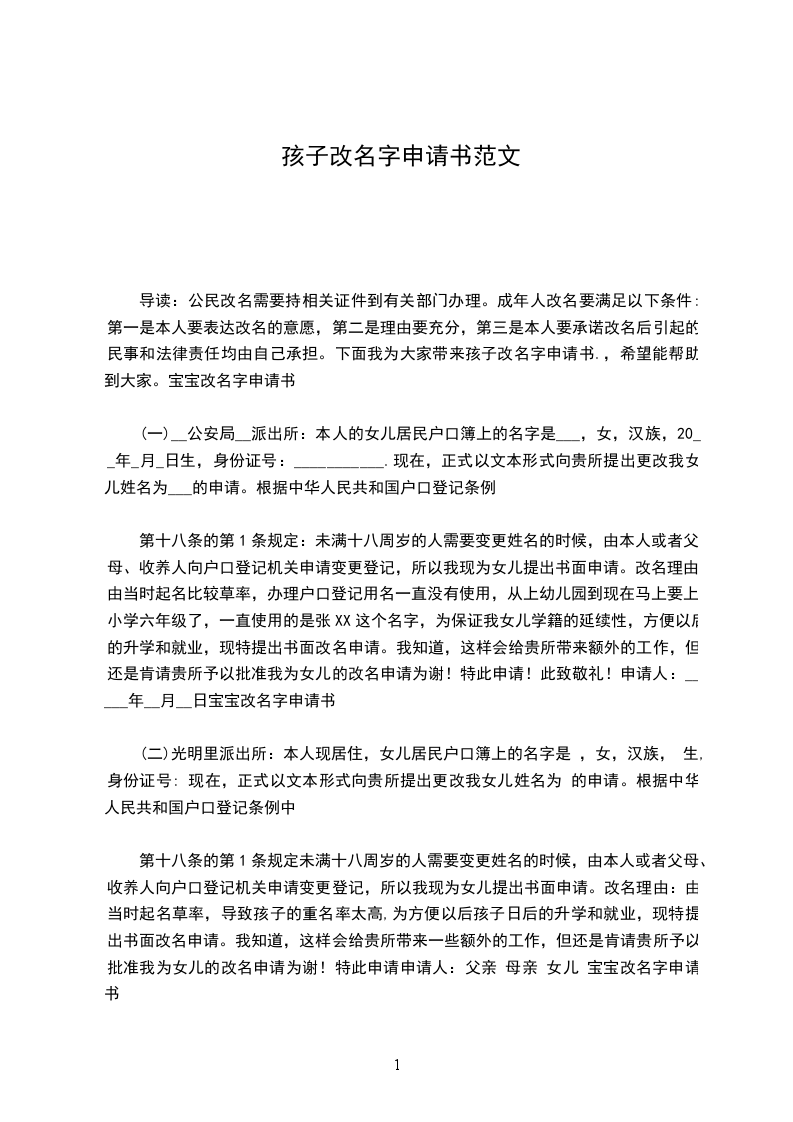 为了给孩子创造一个清晰、便捷的生活环境,我们慎重决定为孩子更改姓名。现特向贵单位提出更名申请,申请将[小孩原名]更改为[小孩新名]。