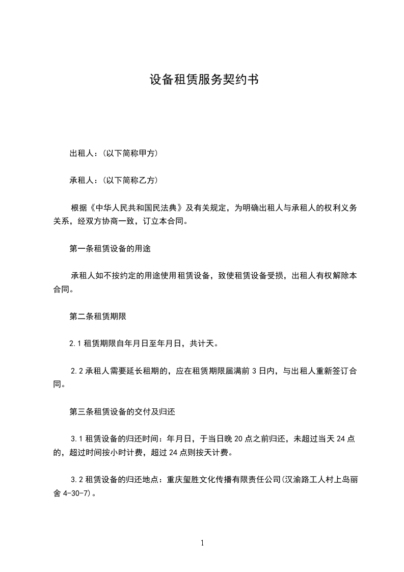 3.2租赁设备的归还地点:重庆玺胜文化传播有限责任公司(汉渝路工人村上岛丽舍4-30-7)。