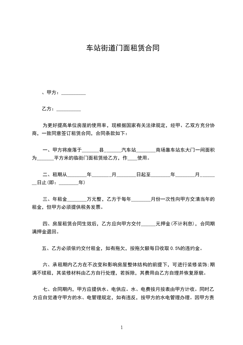 出租方(以下称甲方):