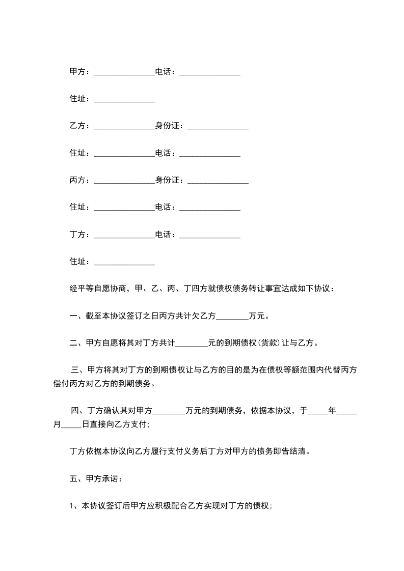1. 甲方对目标公司享有的债权本金为人民币______元(大写______元整),利息为人民币______元(大写______元整),截至本协议签订之日,债权本息共计人民币______元(大写______元整)。具体债权明细见附件一《债权清单》。