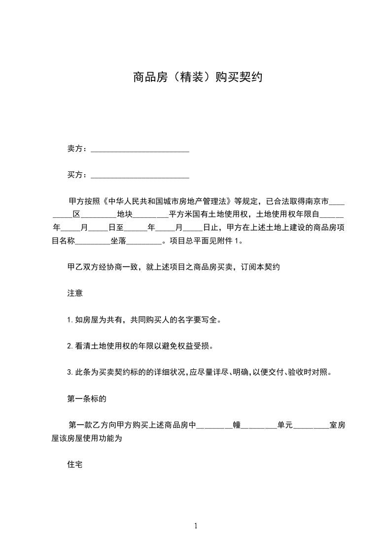 1、甲方一次付清购房款元,乙方于收款后______年____月____日交付房屋。