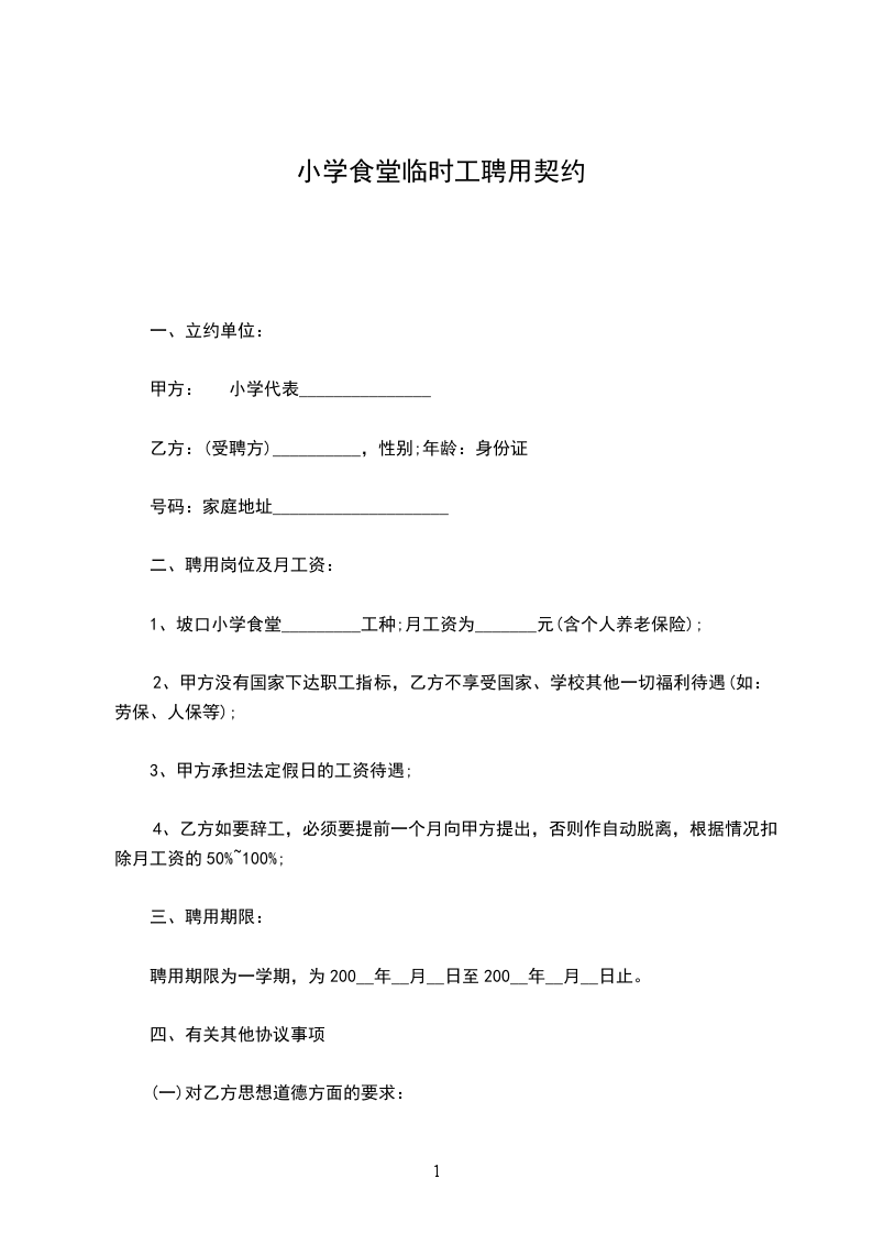 试用期为1个月,合同期一年,即从_____年_____月_____日至_____年_____月_____日止。