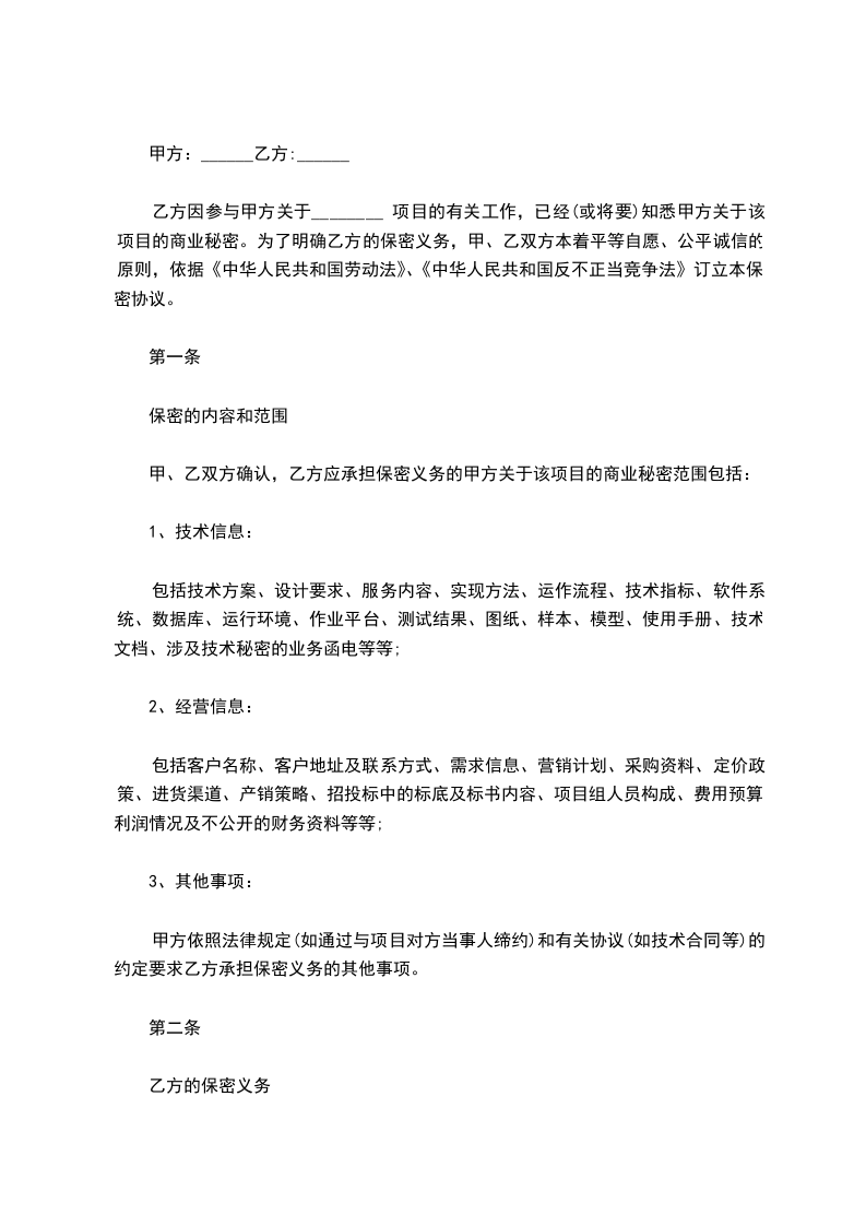 第二条 乙方的保密义务