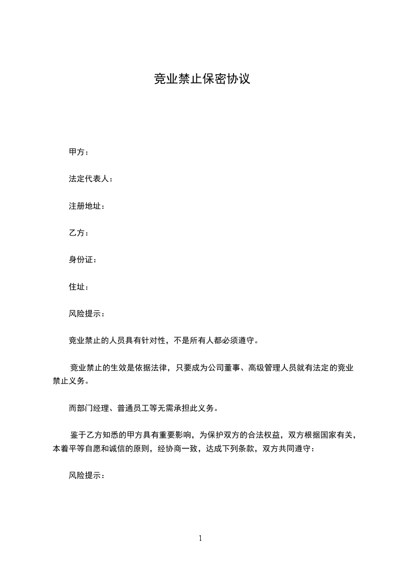 5、双方协定竞业禁止期的,解除或终止劳动合同后,在竞业限止期内乙方不得到生产同类或经营同类业务且有竞争关系的其他用人单位任职,也不得自己生产与甲方有竞争关系的同类产品或经营同类业务。