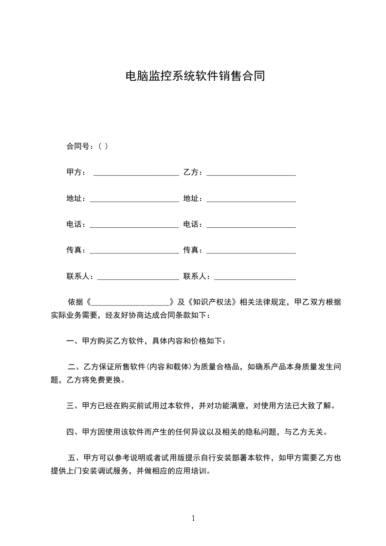 二、乙方保证所售软件(内容和载体)为质量合格品,如确系产品本身质量发生问题,乙方将免费更换。
