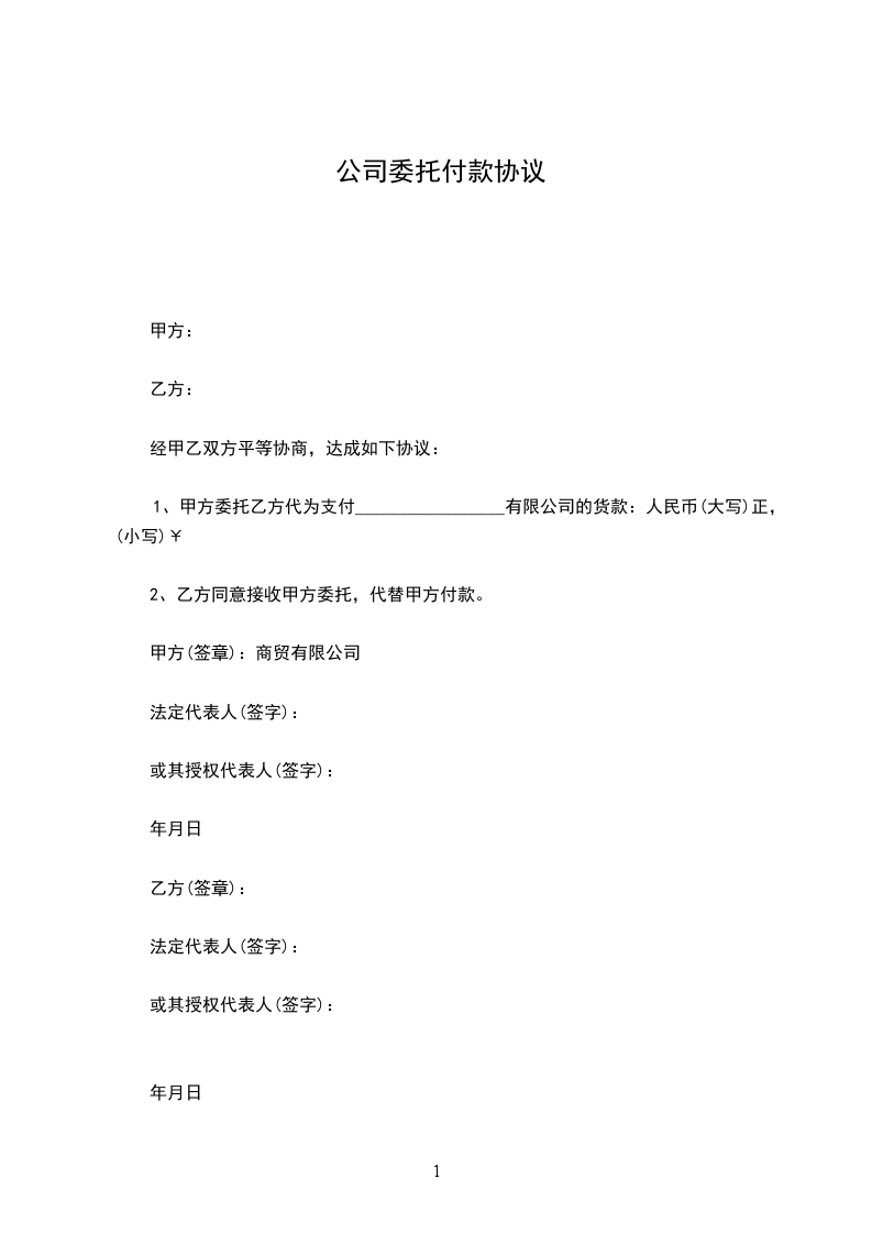 1、甲方委托乙方代为支付_________________有限公司的货款:人民币(大写)正,(小写)¥