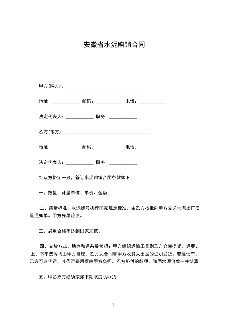 四、交货方式、地点和运杂费负担:甲方组织运输工具到乙方仓库提货,运费、上、下车费等均由甲方自理,乙方凭合同和甲方收货人出据的证明发货。若遇便车,乙方可以代运,其代运费用概由甲方负担。乙方垫付的款项,随同水泥价款一并结算。