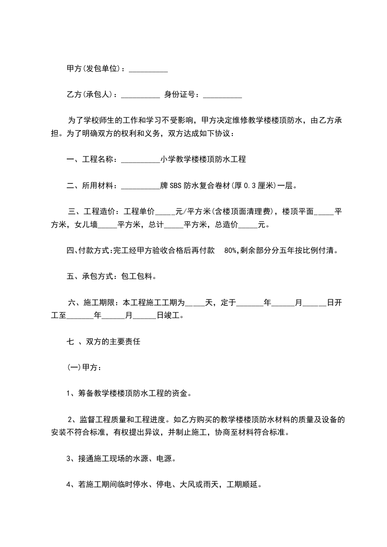 篇2 楼顶防水工程合同
