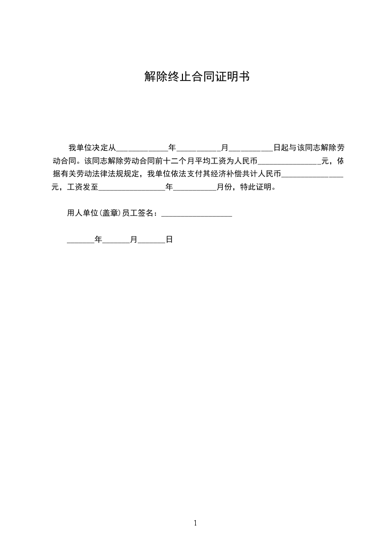 (此证明书应在用人单位与劳动者解除劳动关系7日内到劳动关系科办理备案手续并将其档案转至失业科。)