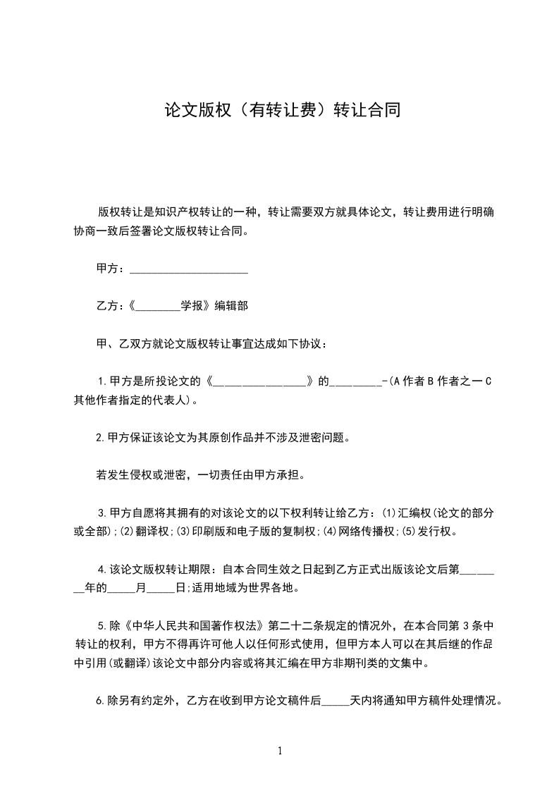 1.甲方是所投论文的《________________》的_________-(A作者B作者之一C其他作者指定的代表人)。