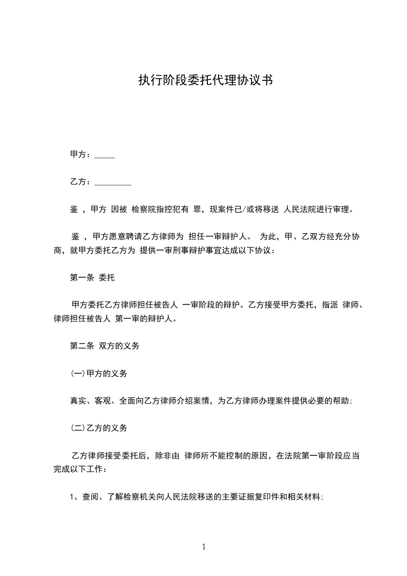 为此,甲、乙双方经充分协商,就甲方委托乙方为提供一审刑事辩护事宜达成以下协议: