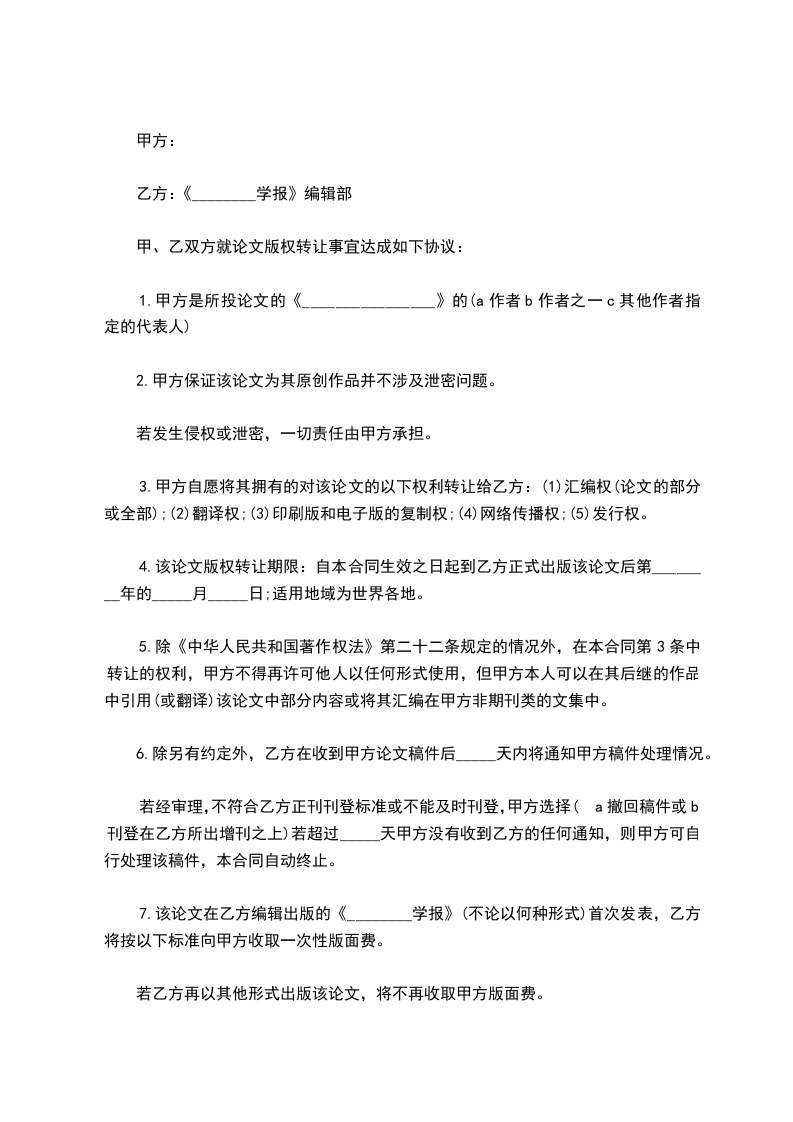 甲方(代表)乙方:《________学报》编辑部