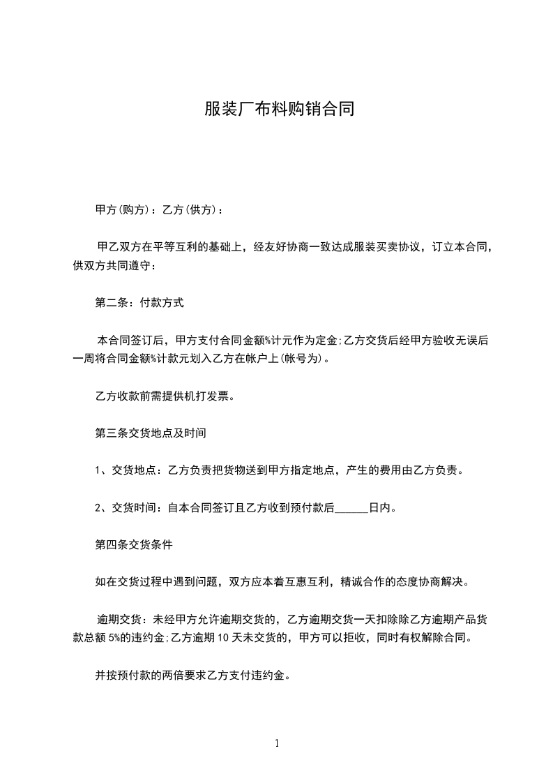 甲乙双方在平等互利的基础上,经友好协商一致达成服装买卖协议,订立本合同,供双方共同遵守: