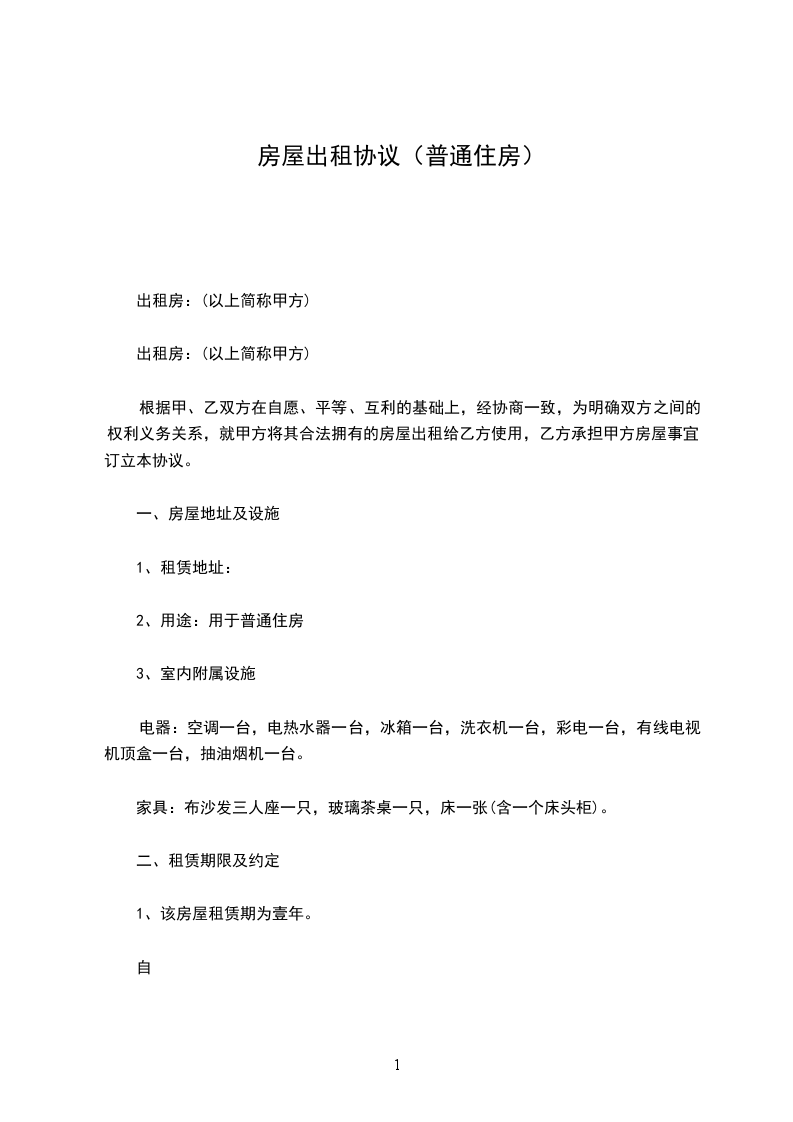 1、该房屋租赁期为壹年。