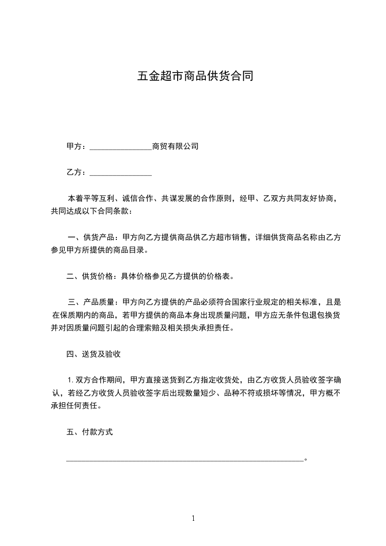 (2)按月付款:当1个月完时,甲方应在本月末的最后三、四天内向乙方付当月提供的商品货款,甲方并通过单位账户转账给乙方的单位帐上。