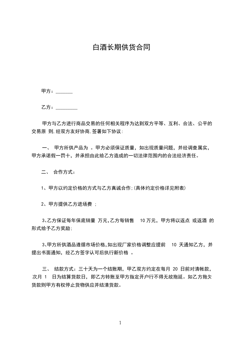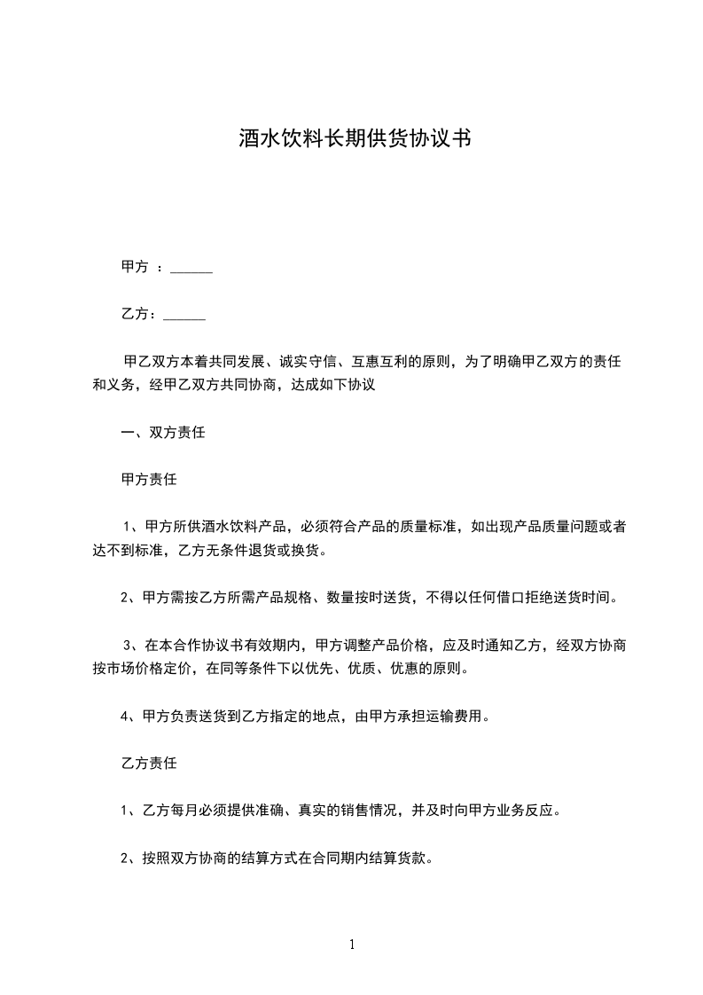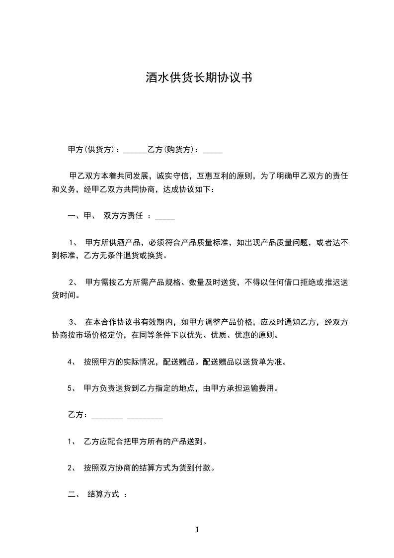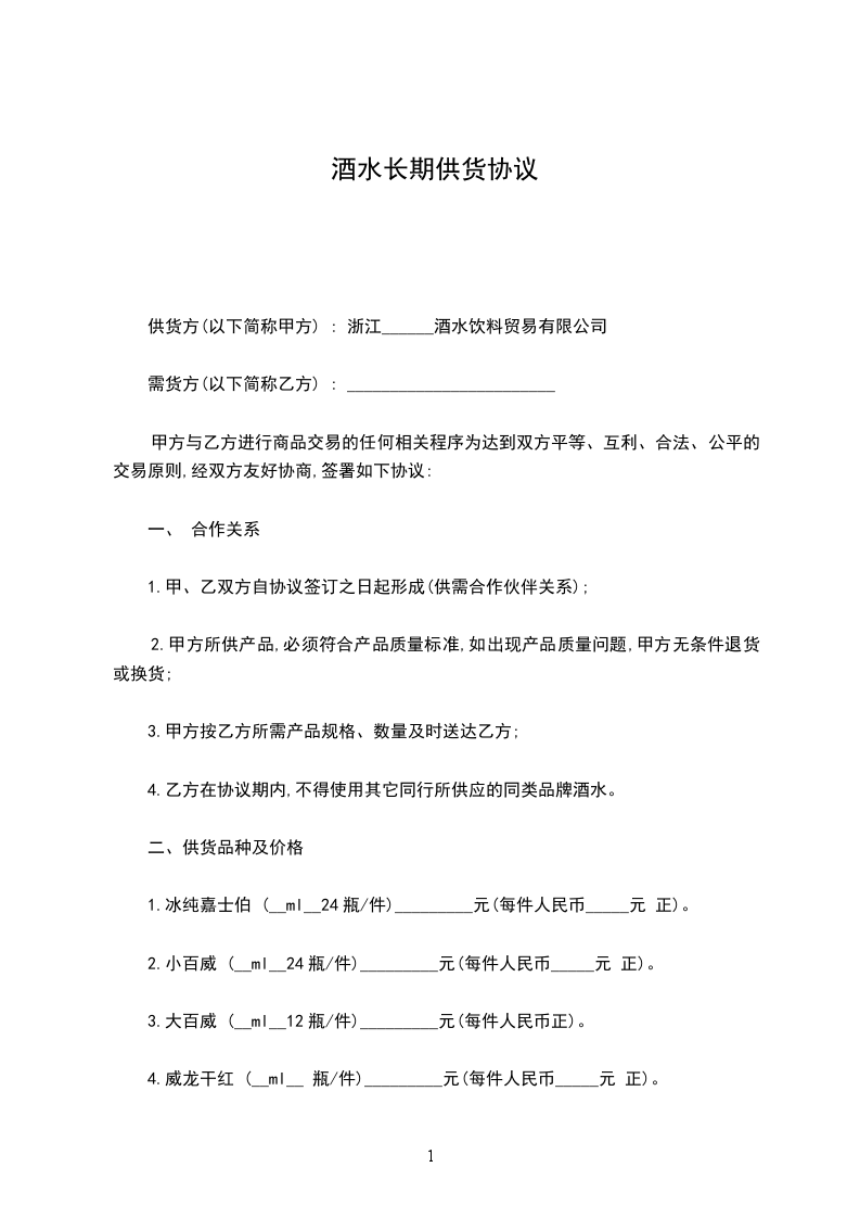 酒水长期供货合同,是供需双方为保障长期稳定的酒水供应而签订的重要协议。它明确了酒水的种类、价格、供货量、交货方式等关键条款,确保双方权益。这份合同能为合作奠定坚实基础,促进双方在酒水业务上长久、顺畅地往来。
