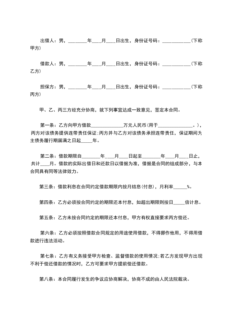 借款金额为人民币(大写):,小写:¥元(大小写不一致时,以大写为准,下同,具体事项见借条)。