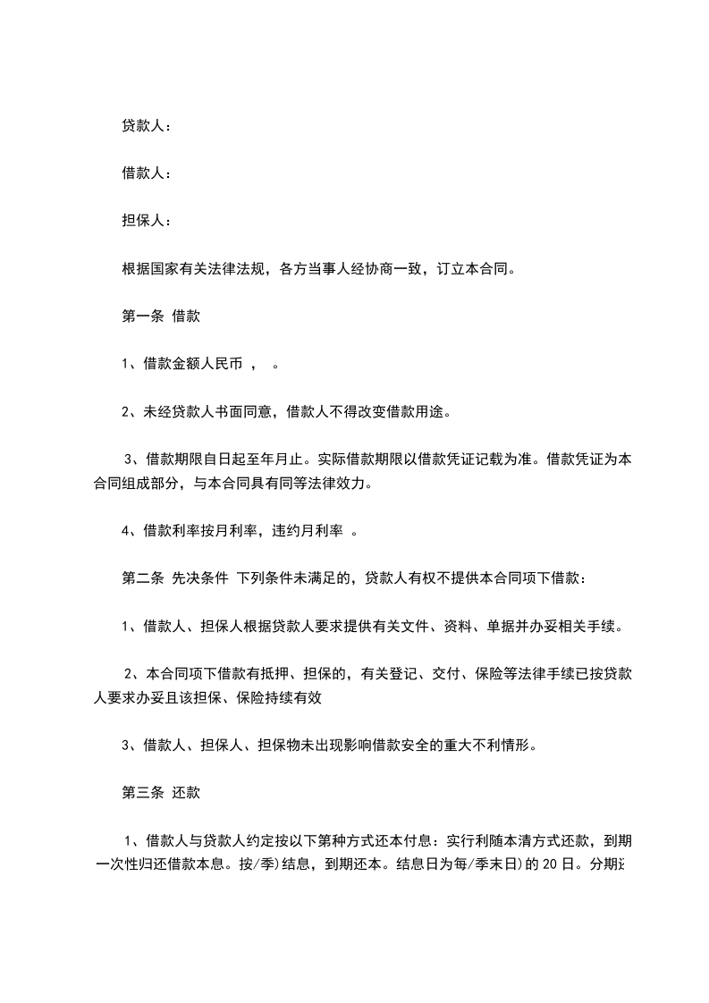 第六条如出现下列情形,贷款人有权随时要求借款人在约定的期限内提前清偿部分或全部贷款本息: