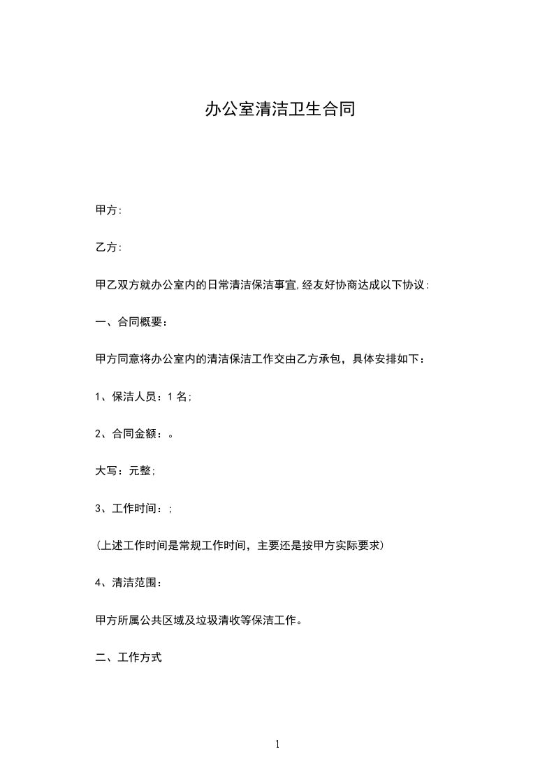 1、清洁服务合由_____年_____月_____日起至_____年_____月_____日止。