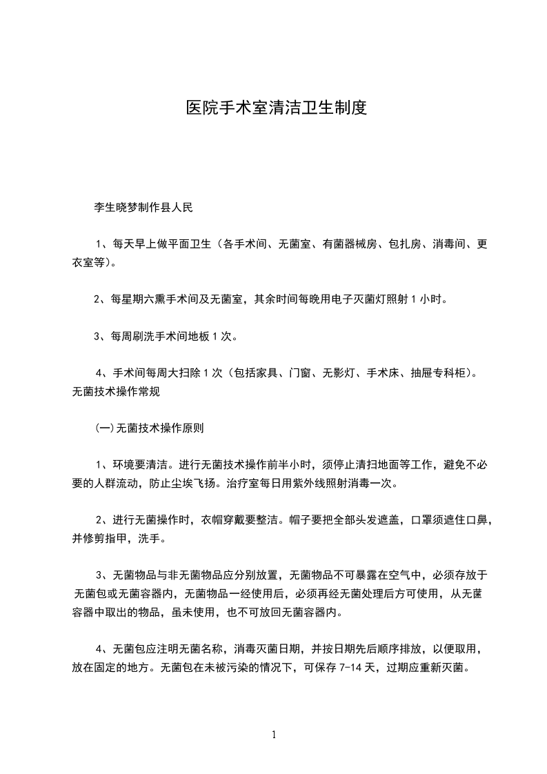 1、保洁人员:1名;