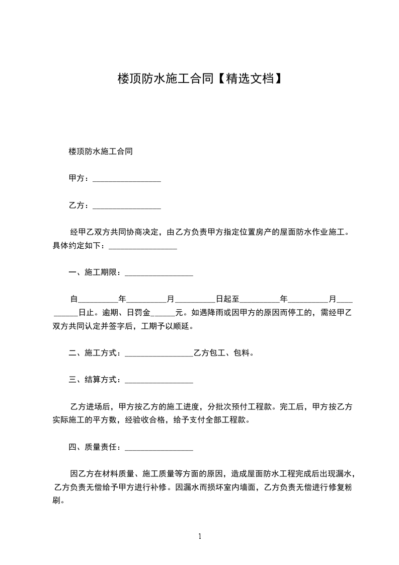 篇1 楼顶防水施工协议