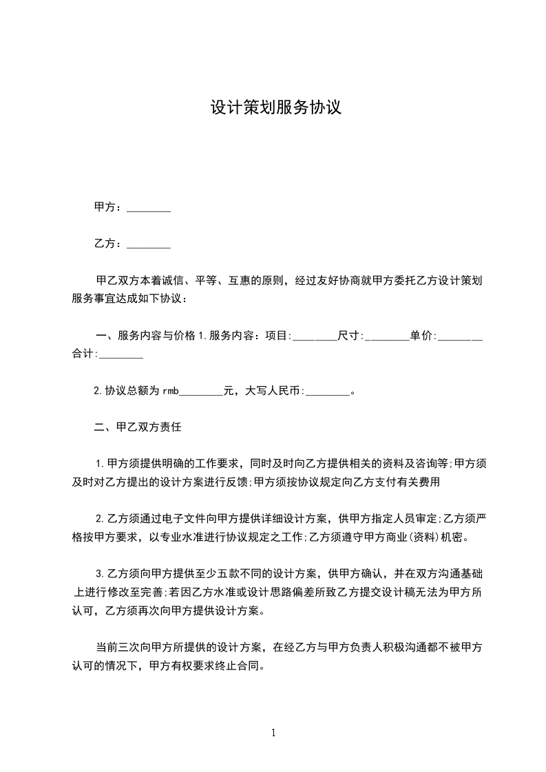 甲乙双方本着诚信、平等、互惠的原则,经过友好协商就甲方委托乙方设计策划服务事宜达成如下协议: