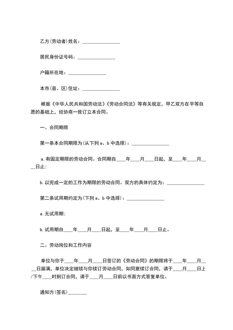a.有固定期限的劳动合同。合同期自 年 月 日起,至 年 月 日止;