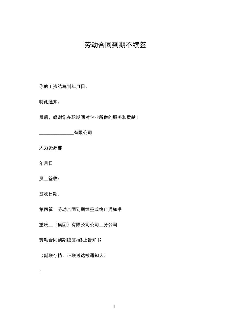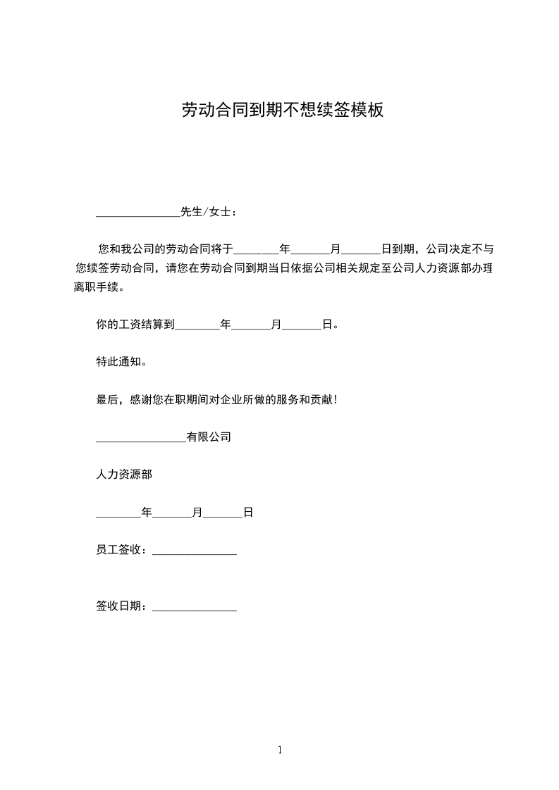 单位与你于____年____月____日签订的《劳动合同》的期限将于____年____月____日届满,单位决定继续与你续订劳动合同,如同意续订合同,请于____月____日上/下午____时到订合同,请于____月____日前以书面方式答复单位。