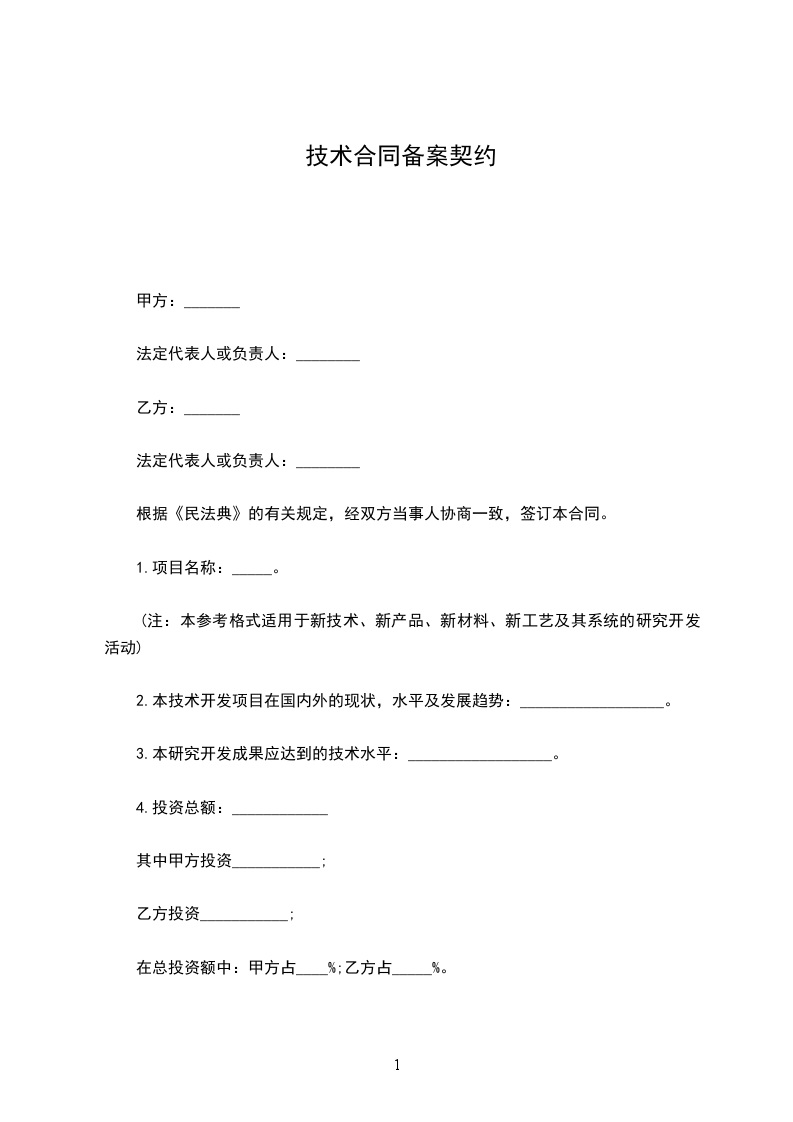 (注:本参考格式适用于新技术、新产品、新材料、新工艺及其系统的研究开发活动)