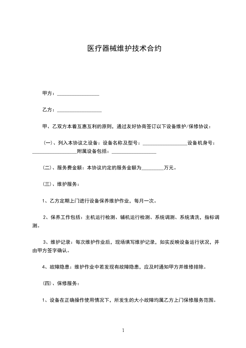甲、乙双方本着互惠互利的原则,通过友好协商签订以下设备维护/保修协议: