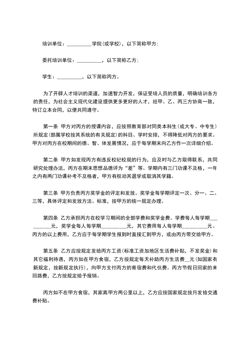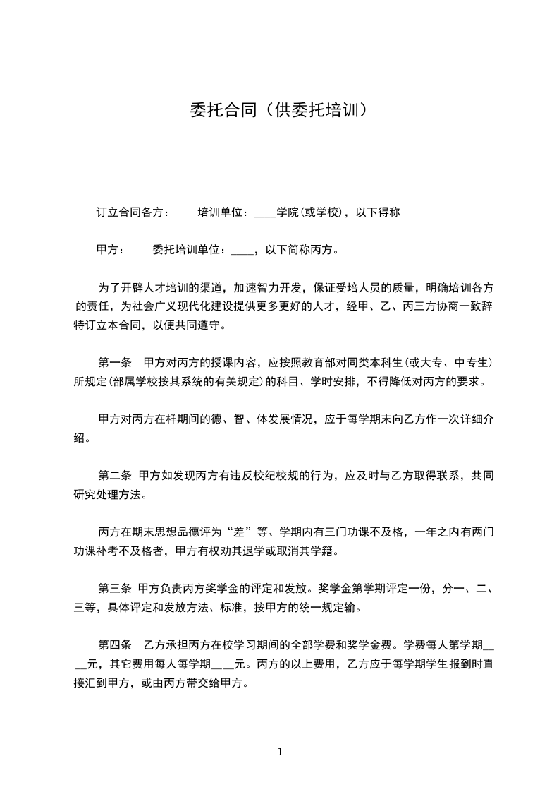 鉴于委托人希望通过受托人提供的培训提升自身/[学员姓名]的专业技能、知识水平或获取特定资格等,经双方友好协商,达成如下委托培训协议: